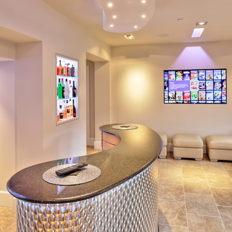 A clever solution that allows you an immersive home cinema experience without compromising on the everyday functionality of your living space. Media room provide functional living space for the family with everything you would expect to find within a living area. The rooms are fitted with discreet speakers and television for every day watching. At the push of a button the room is transformed into a cinema room, a hidden projector and projection screen drop down from the ceiling, your lighting dims and blinds close. A discreet sound system hidden behind artwork within your interior design and bespoke mood lighting to create the atmosphere you want for the different functions of your living space be it TV, gaming or a big movie night.