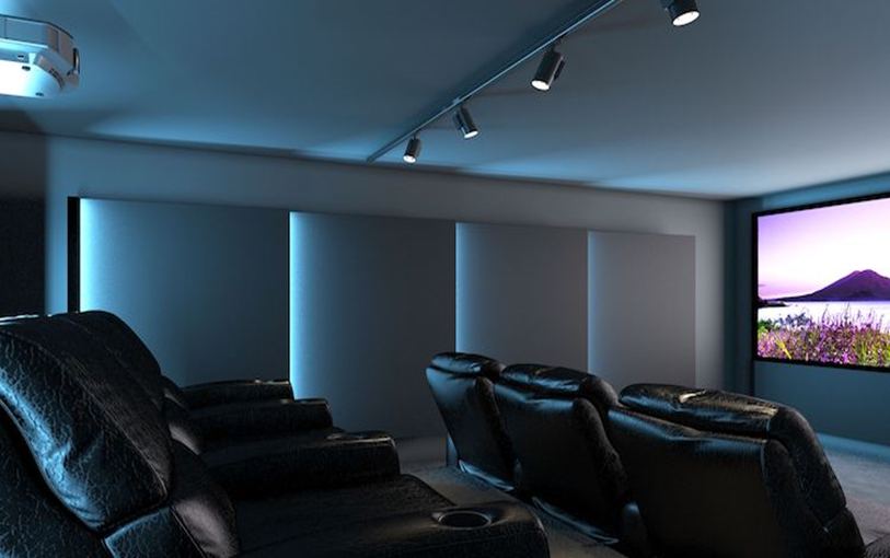 A smart home cinema room is more than just a sofa, screen and speakers. The shape of the room, controlling outside light and sound proofing are important aspects that we consider while choosing the space for dedicated home cinema. We would recommend renovating the room to cast a large enough picture, in order to call this room a proper home cinema room.